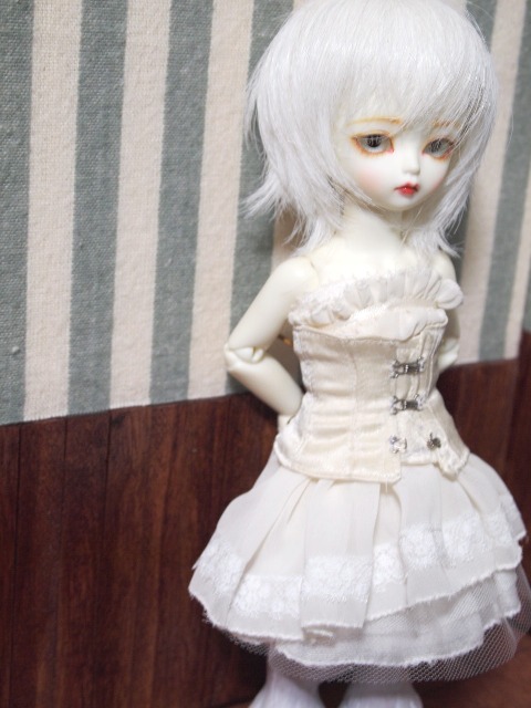 angeサイズでは、白のコルセット&ワンピース。