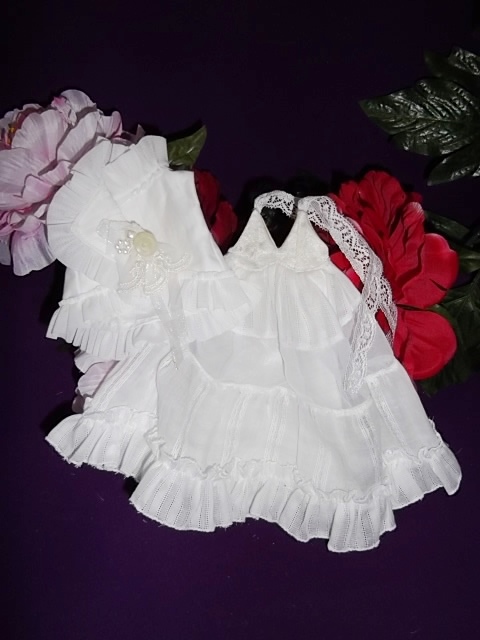 白はロングワンピースタイプ、黒は膝丈のワンピースにそれぞれ上着が付属いたします。