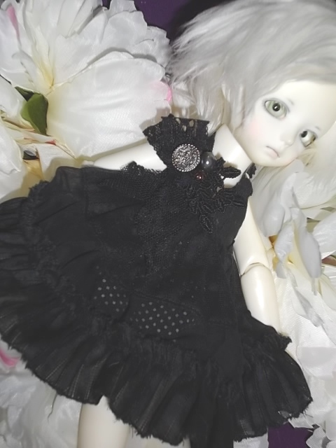 白はノースリーブブラウス風、黒はパフスリーブブラウス風で制作しております。